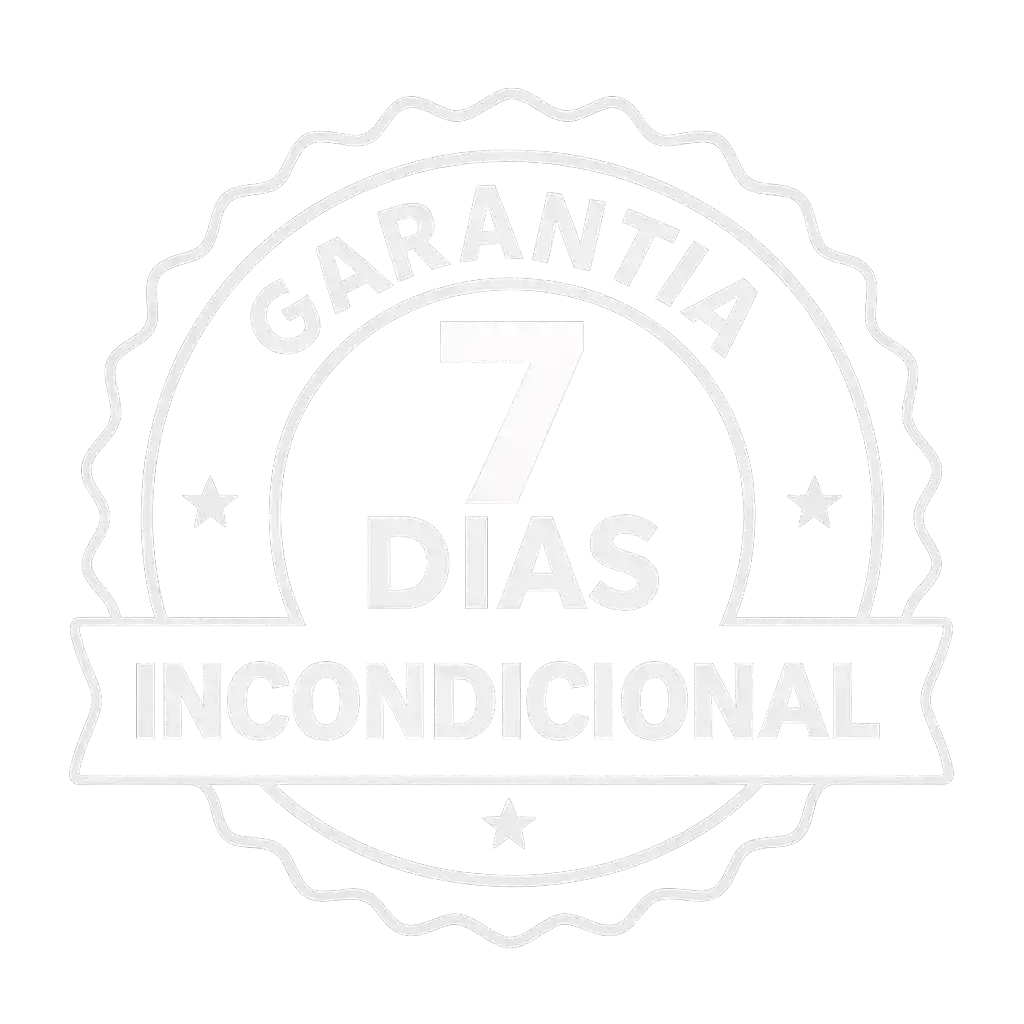 Se dentro de 7 dias você sentir que o curso não é pra você, devolvemos 100% do valor investido. Sem burocracia, sem letras miúdas.